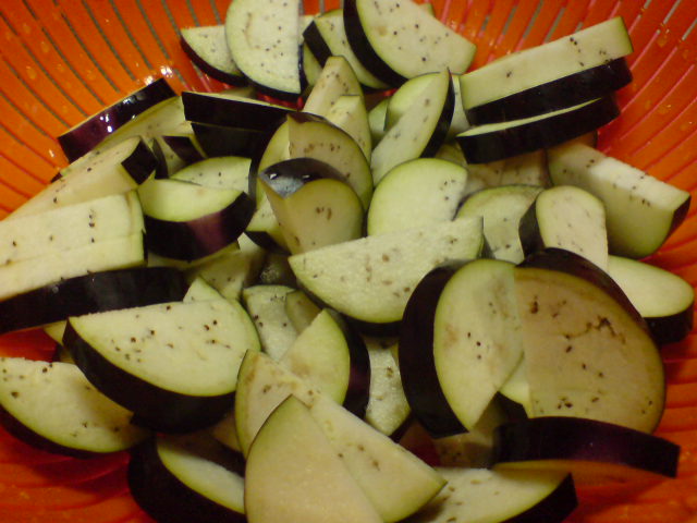 さて、1晩放置したナスを取り出して続きを作りましょう。